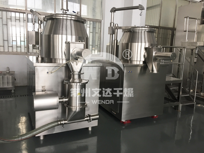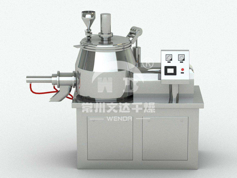 粉体物料与粘合剂在圆筒形容器中由底部混合浆充分混合成湿润软材,然后由侧置的高速粉碎桨切割成均匀的湿颗粒。