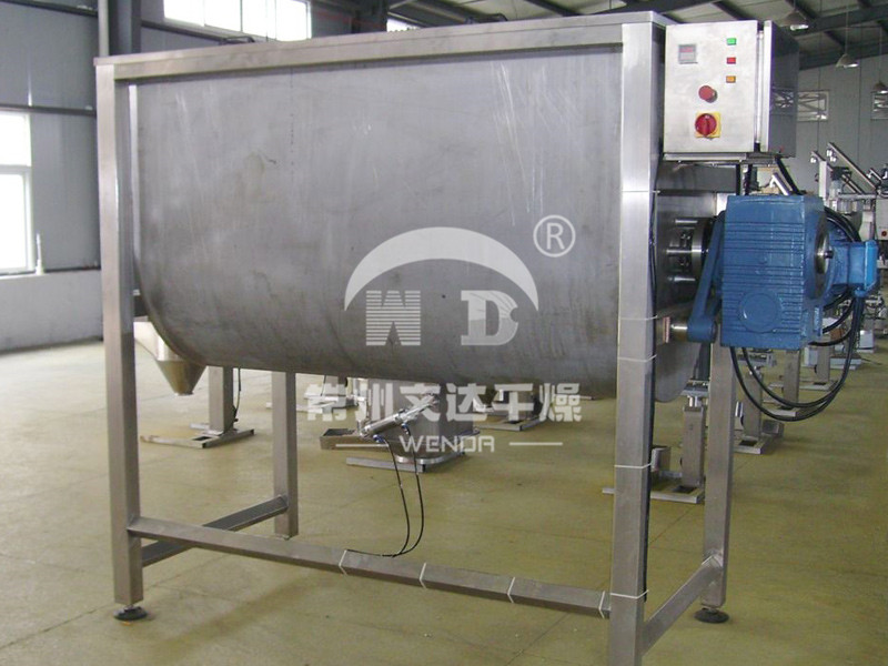 螺带混合机一般用于粘性或有凝聚性的粉粒体的混合以及粉粒体中添加液体及糊状物料的混合,同时由于粘性物料清洗困难的特点,适用于产量大、不经常更换品种的场合混合。