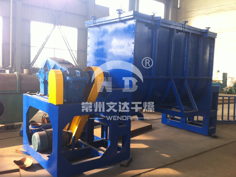 该机型由容器、螺旋搅拌叶片和传动部件组成:螺旋叶片一般做成双层或三层,外层螺旋将物料从两侧向中央汇集,内层螺旋将物料从中央两侧输送,形成对流混合。