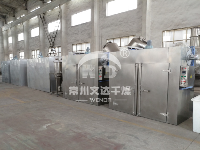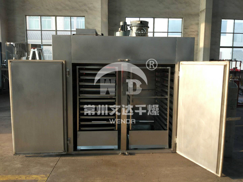 型号规格 | 每次干燥量(kg) | 风机功率(kw) | 耗用蒸气(kg/h) | 烘车(set) | 烘盘(只) | 宽×深×高(mm) | 上下温度(℃) |