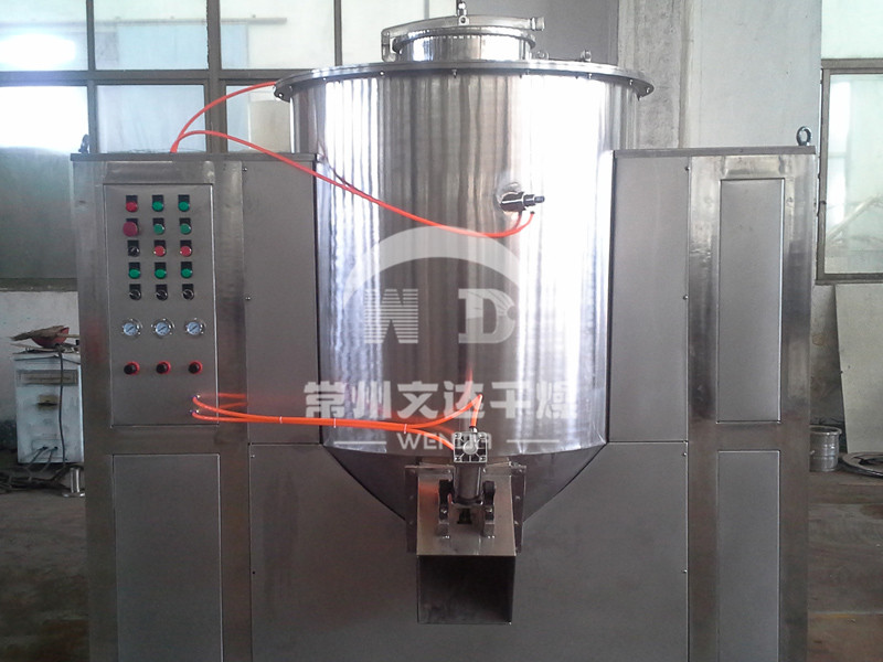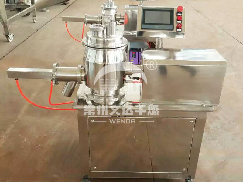 粉体物料与粘合剂在圆筒形容器中由底部混合浆充分混合成湿润软材,然后由侧置的高速粉碎桨切割成均匀的湿颗粒。