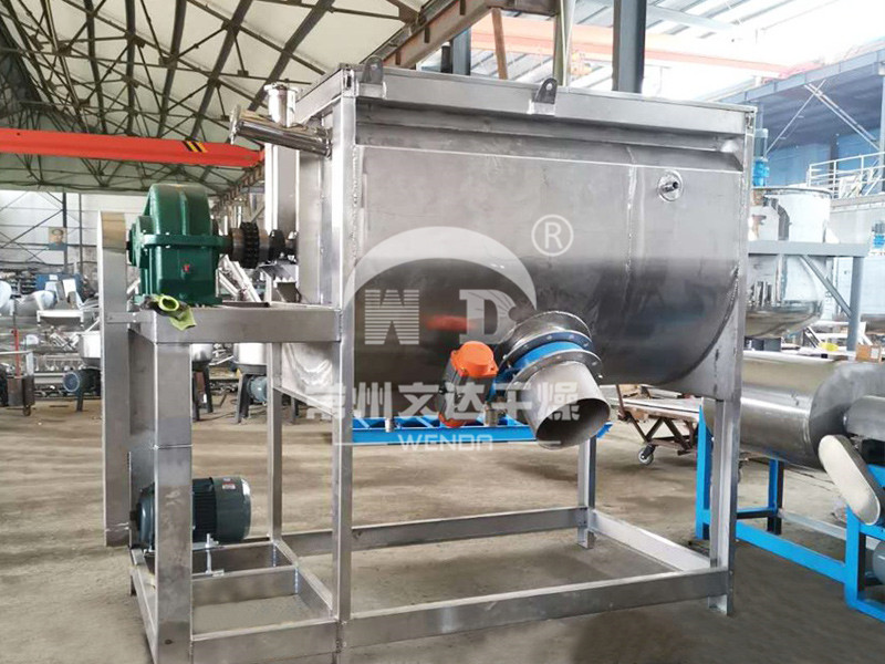 螺带混合机一般用于粘性或有凝聚性的粉粒体的混合以及粉粒体中添加液体及糊状物料的混合,同时由于粘性物料清洗困难的特点,适用于产量大、不经常更换品种的场合混合。