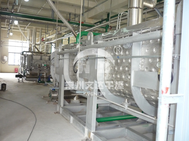 污泥烘干机可以一次性将90%含水量的物料烘干至成品。针对污泥烘干过程中易结团结块的特性,改变了一般单通道干燥机的料板结构形式,采用了组合式自清理装置,极大地扩展了单通道干燥机应用范围,不仅可以干燥各类污泥,还可以干燥各种高粘度物料。