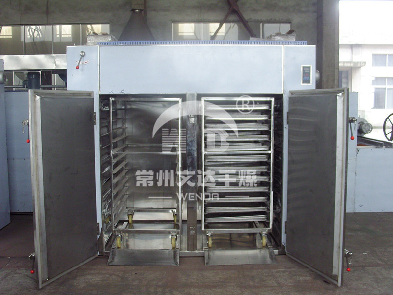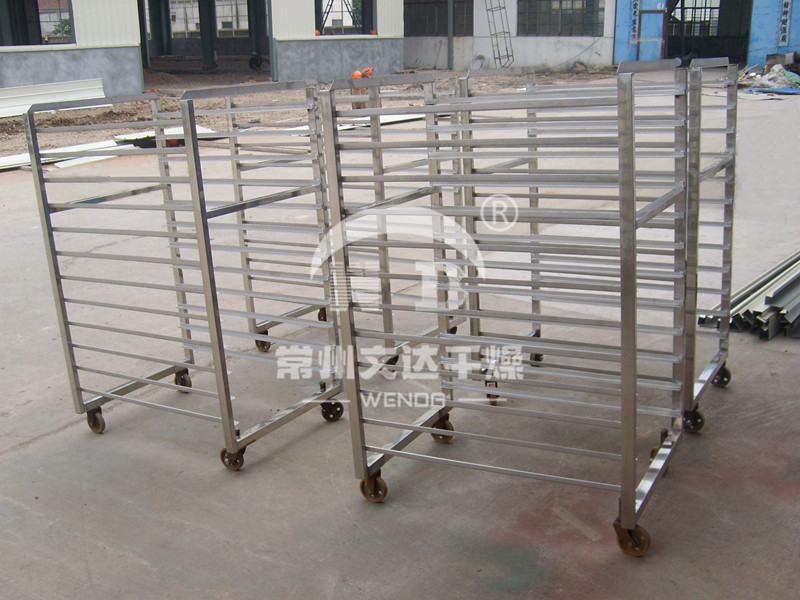 型号规格 | 每次干燥量(kg) | 风机功率(kw) | 耗用蒸气(kg/h) | 烘车(set) | 烘盘(只) | 宽×深×高(mm) | 上下温度(℃) |