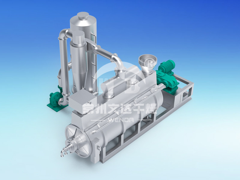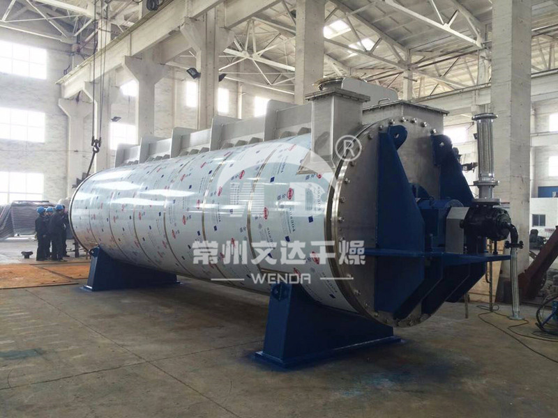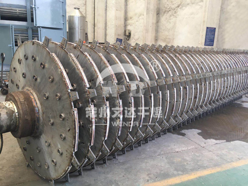 空心轴上密集排列着中空圆盘,热介质经空心轴流经圆盘。单位有效容积内传热面积很大,热介质温度从-40℃到320℃,可以是水蒸汽,也可以是液体型:如热水、导热油等。间接传导加热,没有携带空气带走热量,热量均用来加热物料。热量损失仅为通过器体保温层向环境的散热。壳体有密封端盖与上盖,防止物料粉尘外泄而充分发挥作用。